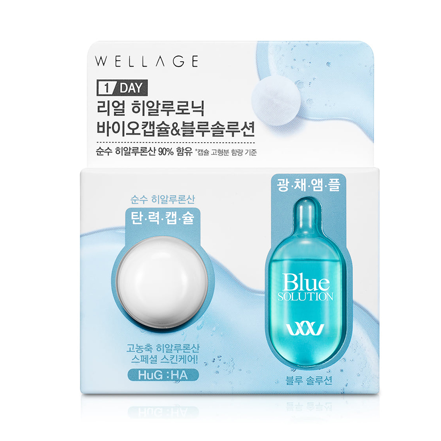 韩国唯拉珠| 高濃縮玻尿酸精華球(15mg+2ml) /WELLAGE | Real Hyaluronic Bio Capsule & Blue Solution 1pk